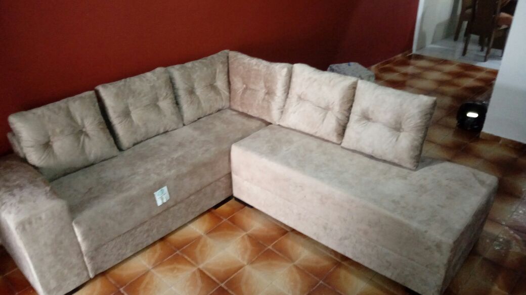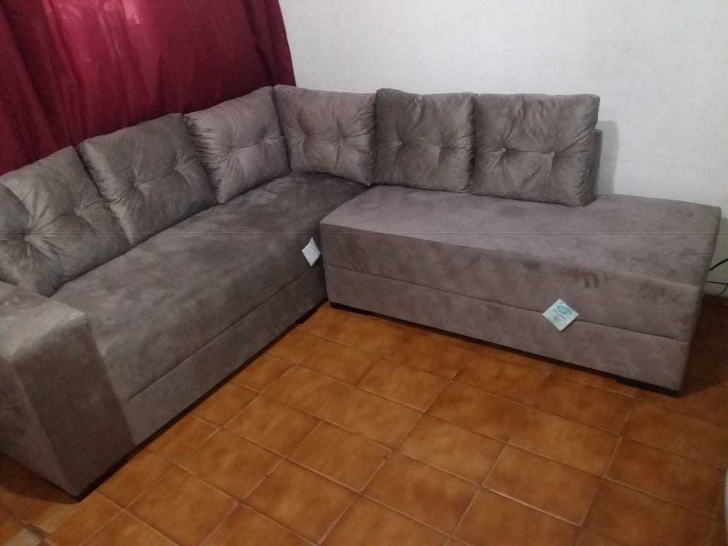 Sofa Modelo L 1B em sued com 06 almofadas soltas
