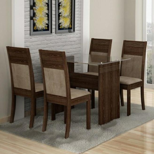 Mesa Cromada 1502 Tampo de vidro com 4 cadeiras 1700