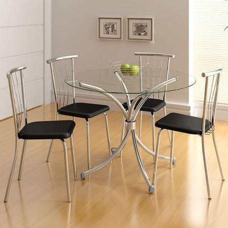 Mesa Cromada 375 Tampo de Vidro Redondo com 4 cadeiras 154