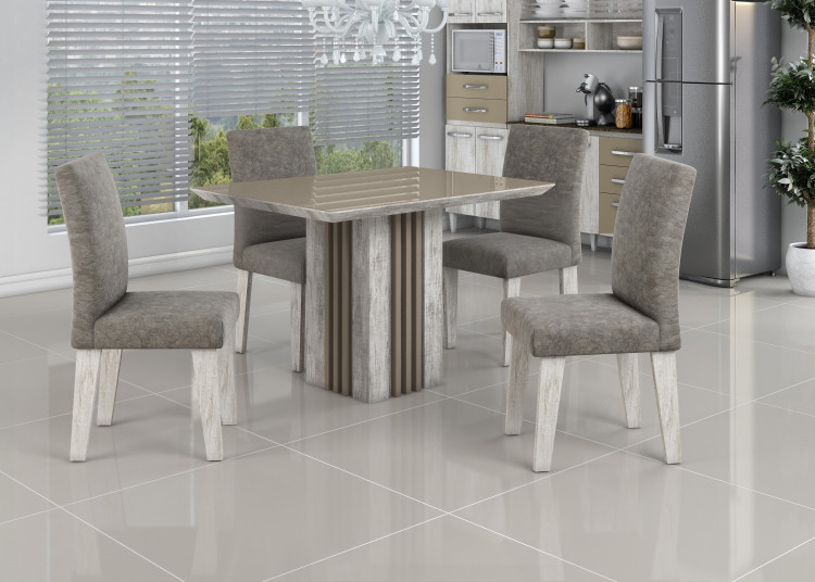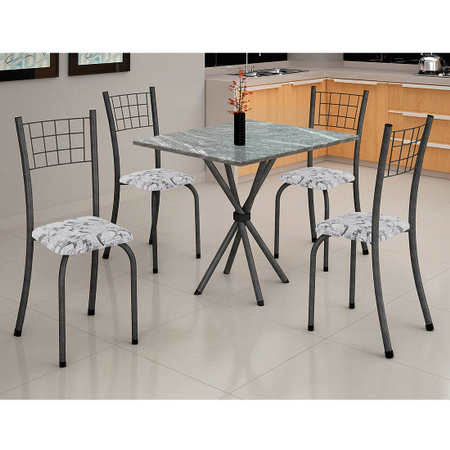 Mesa 048 Dani com 4 cadeiras, tampo 70x70 granito Topazio